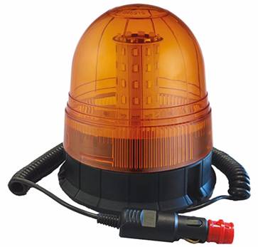 · 9W x 40 LEDS · Double, six & rotating flash · Current draw 0.75A @12VDC. · L 170mm x Ø 140mm · ECE, EMC, R10 and CE Approved. · Protected to IP55 · Comes with cigarette plug & 4M coil cable. |